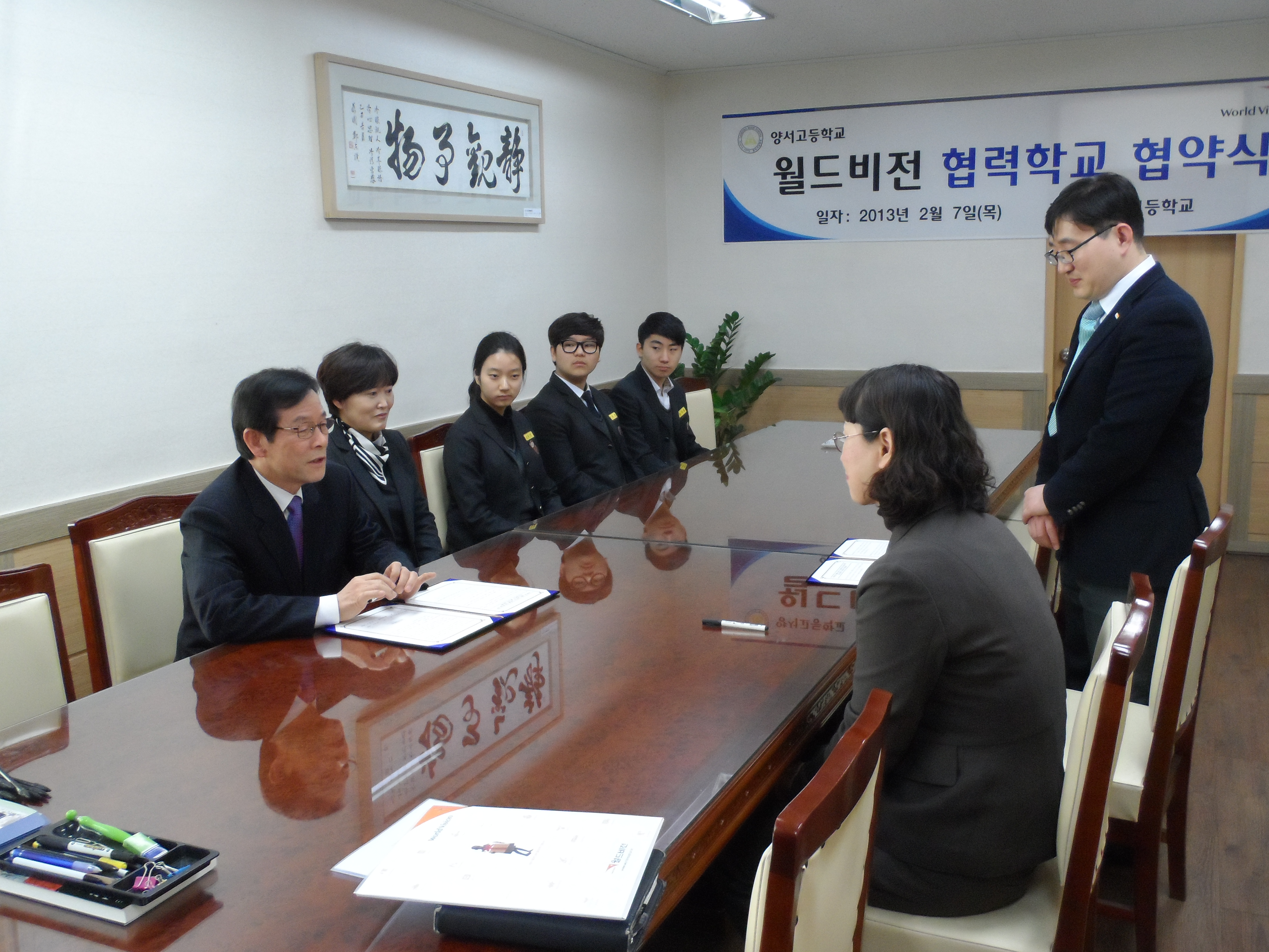 º»±³°¡ ¿ùµåºñÁ¯ÀÇ Çù·ÂÇб³¶ó´Â ÇöÆÇÀ» µé°í ÀÖ´Â 2013³â Çлýȸ ´ëÇ¥µéÀÔ´Ï´Ù.