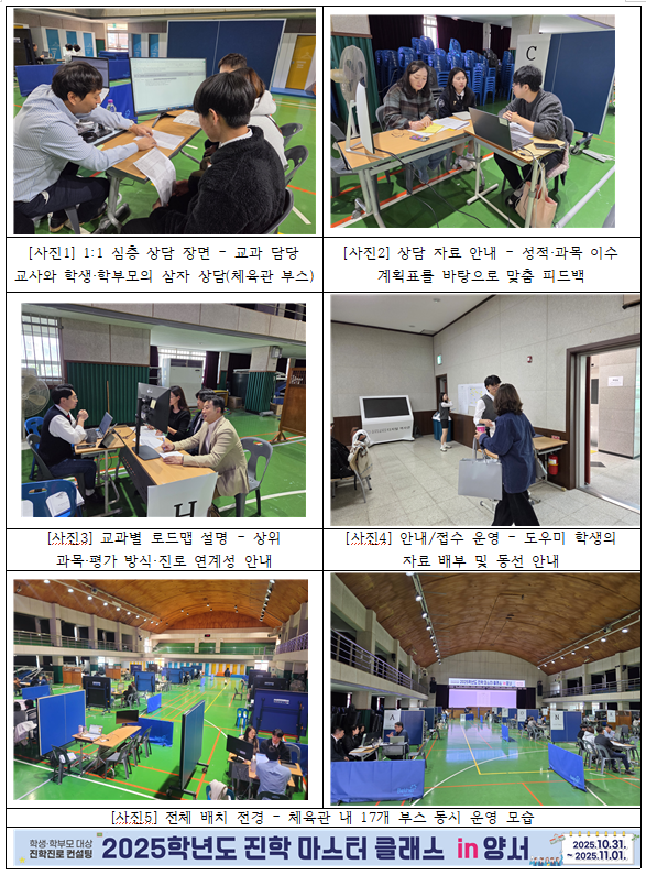 ¾ç¼°íµîÇб³ ÁøÇкδ 2025.10.31.(±Ý)~11.01.(Åä) ¾çÀϰ£ ±³³» üÀ°°ü¿¡¼ ¡¸2025Çг⵵ ÁøÇÐ ¸¶½ºÅÍ Å¬·¡½º in ¾ç¼¡¹¸¦ ¿î¿µÇß½À´Ï´Ù. º» ÇÁ·Î±×·¥Àº ±³°ú ´ã´ç ±³»ç¿ÍÀÇ 1:1 ½ÉÃþ »ó´ãÀ» ÅëÇØ ÇлýÀÇ Áø·Î ¸ñÇ¥¿¡ ¸ÂÃá °ú¸ñ ¼±Å÷Çо÷ ¼³°è¸¦ Áö¿øÇϰí, Çкθð-Çлý-±³»ç°¡ ÇÔ²² Áø·Î ·Îµå¸ÊÀ» ±¸Ã¼ÈÇÏ´Â µ¥ ¸ñÀûÀÌ ÀÖ½À´Ï´Ù.