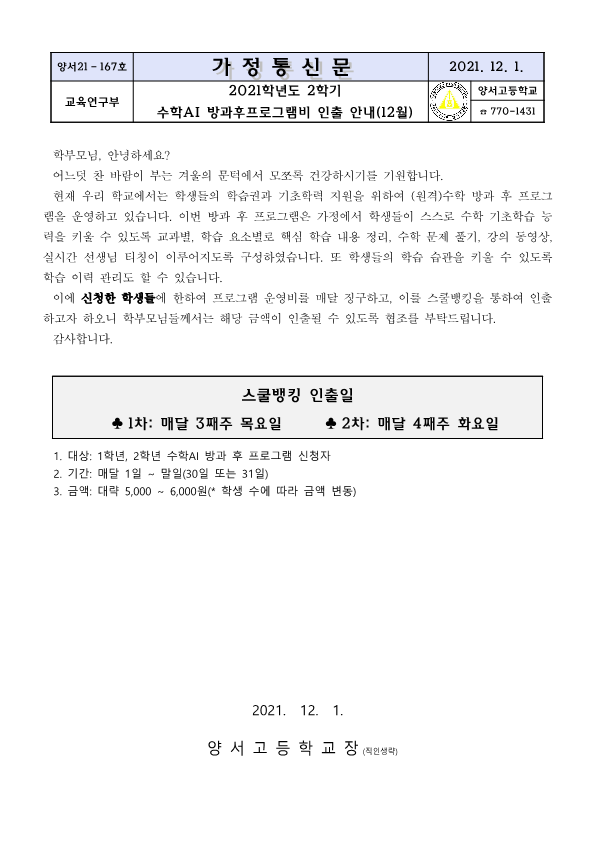 2021Çг⵵ 2Çб⠼öÇÐ AI ÇÁ·Î±×·¥ ¹æ°ú ÈÄ ¼ö¾÷ÀÇ ¿î¿µºñ¸¦ ¾È³»ÇÏ´Â °¡Á¤Åë½Å¹®ÀÔ´Ï´Ù.