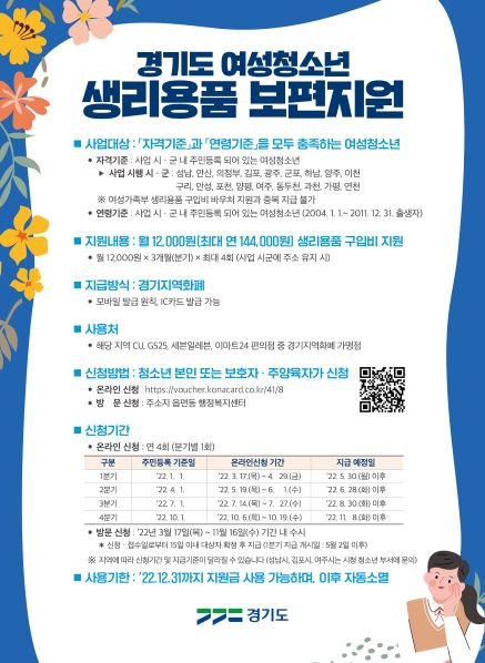 °æ±âµµ ¿©¼ºÃ»¼Ò³â »ý¸®¿ëǰ º¸ÆíÁö¿ø »ç¾÷ ¾È³»