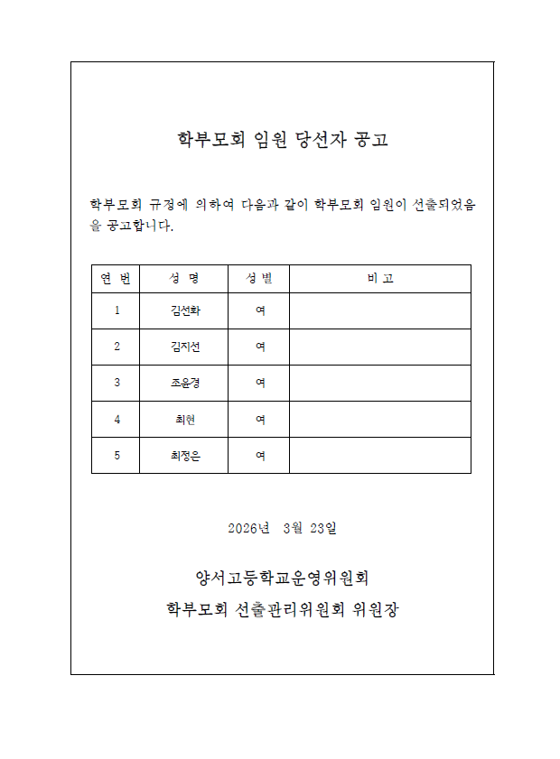 Á¦ 27±â ¾ç¼­°íµîÇб³ Çкθðȸ ÀÓ¿ø ´ç¼±ÀÚ °ø°í